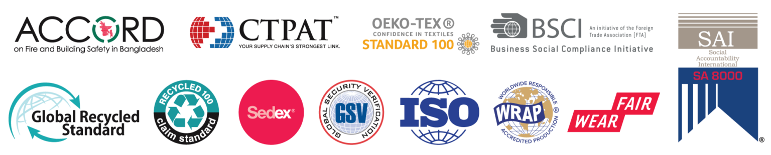 We uphold the highest standards of compliance and ethical responsibility across our global sourcing operations. Our partner factories are rigorously vetted and regularly audited to ensure adherence to international labor laws, workplace safety regulations, and social compliance frameworks such as BSCI, SEDEX, WRAP, and beyond. We are deeply committed to fair wages, safe working conditions, and zero tolerance for discrimination, child labor, or forced labor. Our transparent sourcing practices are designed to give clients confidence that their products are made with integrity, respect, and accountability every step of the way.